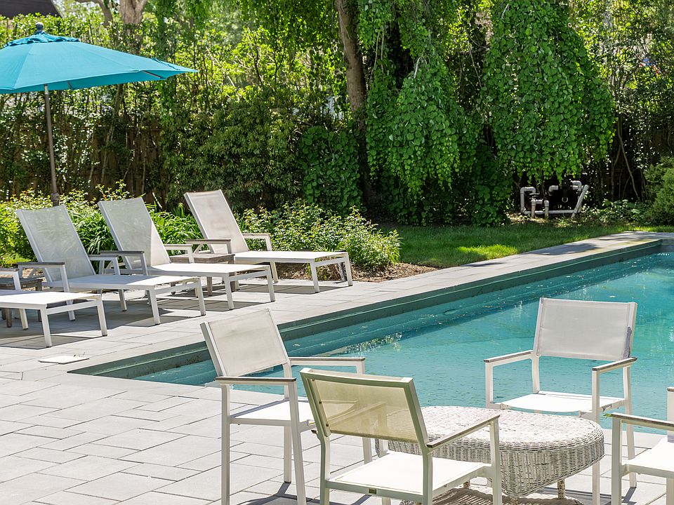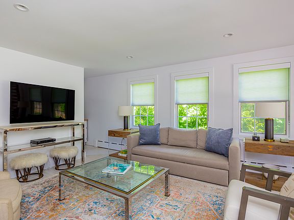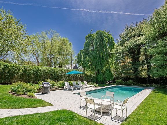 Rental Registration #: 24-1376 Rental Registration #: 24-1376. It's pristine! It's comfortable! It's just a perfect location for the summer! This chic renovated farmhouse is newly furnished and updated for today's living with a modern kitchen, open floor plan with living room and dining room plus a large separate den that leads to an outdoor deck and can also serve as a fourth en-suite bedroom. Upstairs find three additional bedrooms, two of which open to a second floor deck and all three with their own bath. This home sits on a lovely secluded half acre complete with lush landscaping and a pool. Hidden away on a quiet lane just off North Main Street and just around the corner from your favorite restaurants, shopping, entertainment and convenient transportation to Manhattan. Now available for a two week option from August 17 to September 1.