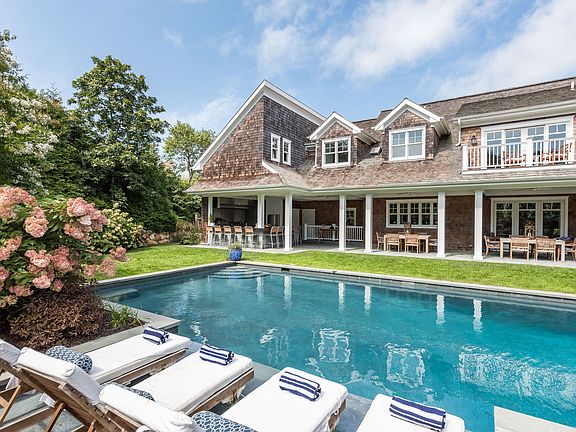 Completed in 2016, this shingle traditional offers a host of amenities that make it a difficult home to leave, even to just take a dip in the ocean or seek the secluded exploratory sunset bay beach just moments away.There are 5+ bedrooms, 8.5 baths, a marble central island chef's kitchen, a voluminous 2 story living space, formal dining room, breakfast nook, pizza oven, outdoor kitchen cabana, heated Gunite pool with lounge, indoor & outdoor fireplaces, office, 3 car garage Custom finishes include wine cellar/tasting room, stadium seating theater, gym, integrated sonos system, alfresco dining area, climate controlled storage, covered porches and an artfully designed with private established all seasons flowering & mature landscape. A true pleasure to show Come see!