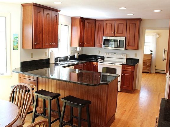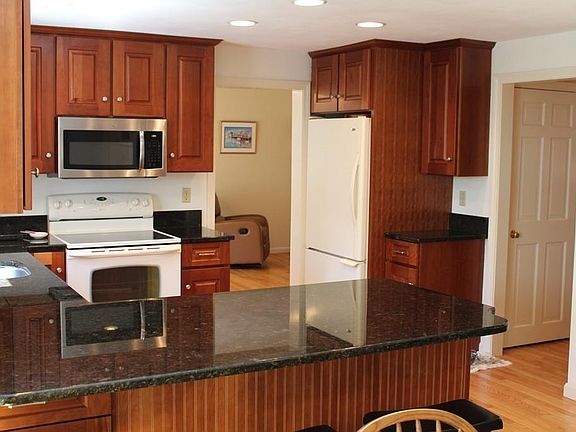 LOCATION, LOCATION, LOCATION! This Gorgeous Updated and well- kept move in Ready Gambrel Colonial Boasts many updates including a GOURMET CHERRY KITCHEN with Custom cabinets and Granite counter tops. Upgraded 6' walk out bay from kitchen that leads to an oversize private deck. Formal dining room with Pristine HARD.WOOD FLOORS. Large Family room between garage and Main House wood floors, cathederal ceiling, and a Picture window with breathtaking view of professional landscaped back yard. Second floor BOASTS 3 large Bedrooms , Master Bedroom with Master Bath, Home has a HUGE GREAT ROOM/OFFICE/or 4th Bedroom . Additional Finished Bonus Room in lower level with a walk out to a professionaly landscaped lot. Two Car garage with electric door openers, New heating System 2019,200 Amp Electrical Service, updated insulated windows,