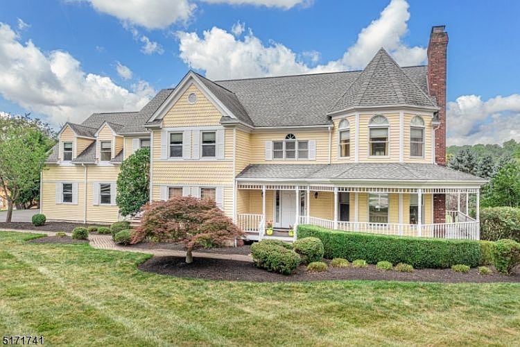 Wonderful custom home sited on 2 plus acres on quiet cul-de-sac street. Undeniable curb appeal with split rail fence and wraparound porch. Spacious marble entry welcomes guests. Library showcases handsome wood paneling and built-in bookshelves. Formal living room with traditional fireplace and two elegant French doors leading to wraparound porch. Generously sized eat in kitchen features cherry cabinets, large island, granite countertops, SS appliances, pantry plus additional storage flows to 4 season conservatory with wall to wall windows overlooking spectacular backyard. Enjoy entertaining in the great room with vaulted ceilings, floor to ceiling wood burning brick fireplace and walk-in wet bar. Imagine holiday gatherings in the gracious dining room. Primary suite boasts fabulous updated bath with large soaking tub, walk-in shower, dressing room and two walk-in closets, 4 additional bedrooms and 2 full baths complete the 2nd level. Fantastic finished lower level walk-out includes large recreational room, possible au pair and or in-law suite with full bath and sliders leading to newer expansive paver patio with beautiful stone retaining walls. Impressive large level backyard to host all recreational activities - football, baseball, soccer, etc... Hardwood floors throughout. Pool is possible. Leased solar panels transferable, option to renew or cancel. Invisible dog fence included in sale. Fireplaces sold "as is" with no known defects.