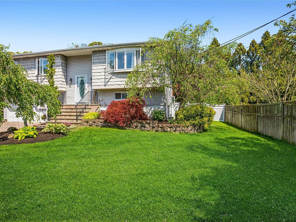 Welcome home to this wide line expanded high ranch, completely renovated and updated. 5 Bedrooms 1.5 full baths, Gourmet Chefs Kitchen with brand new appliances including 5 burner gas Viking stove, Double Oven, in island microwave, pot filler, subway tile backsplash, and quartz countertops. Open concept living and dining. Dry bar in the dining space with built in cabinets. Hardwood floors throughout. Sliding doors from Kitchen leads to large deck w/ 1/4 Acre of landscaped property & a gorgeous inground pool (salt water) with a cascading waterfall. Upper level features 3 bedrooms and 1 full bath. Lower level features 2 bedrooms and a 1/2 bath with radiant heated tile floor in the den. New gas hot water heater. New boiler. Gas conversation. New HVAC with an extended 8 year warranty. New roof. New back yard fence. Ventilated Attic. IGS system. 3 year old vinyl pool liner. Playground with rubber mulch. Home surveillance system.