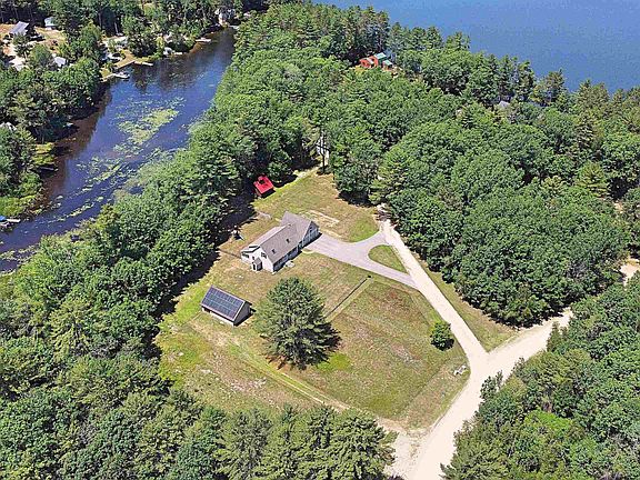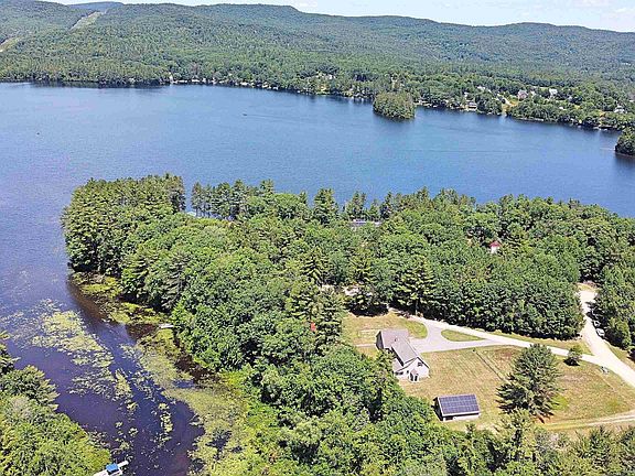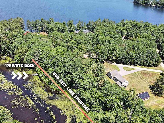 7 Winter Hill Lane is a spacious and sustainable home on Andover's beautiful Highland Lake with room for all! This quality built cape sits on over three acres with 600 feet of lake frontage and a brand new dock! Paired with high efficiency mini splits for heating and cooling and a heat pump hot water heater, the full solar array provides electricity for the whole house! More convenient amenities include an oversized, attached, and heated 2-car garage with storage above, a spacious mud room/breeze way, first floor laundry and multiple outbuildings to store all of your toys. Looking for room to grow? There are four generously sized rooms suitable for bedrooms, office space or play rooms; the primary with an ensuite and walk-in closet and tons of natural sunlight. Practicality and thoughtful design are displayed throughout. Most notably, a dining room that opens to a generous three season, enclosed porch overlooking the back yard. Walk down your own short path to multiple waterfront sites or onto the Northern Rail Trail for 4 seasons of recreational bliss and enjoy the opportunities the pastural land and additional garage and shed (currently a sugar shack) have to offer. Highland Lake is 206 acres with boating allowed.