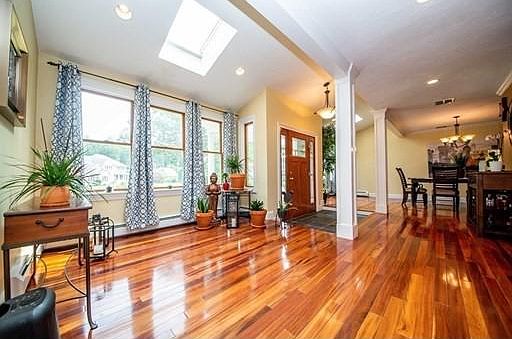 Exquisite Custom Colonial in sought after Mattapoisett neighborhood! This beautiful home features Brazilian wood flooring throughout. The main floor consists of a spacious foyer, half bath, living area, bonus room (with skylights), formal dining area, and breakfast nook (with double sided fireplace) as well as a large gourmet kitchen with custom luxury cabinets & stone countertops, as well as a peninsula and stainless steel appliances. Beautiful hardwood flooring follows you up to 2 bedrooms which share a spacious main bath with custom tile shower surround with tub and a vanity with double sinks. The master bedroom and bathroom are true showstoppers! The master bedroom contains double closets at its entry leading into the spacious bedroom itself that has cathedral ceilings and a huge master bathroom with an incredible walk in shower- the custom shower is oversized with separate shower heads & controls on either side. Close to the Village, restaurants, & all Mattapoisett has to offer.