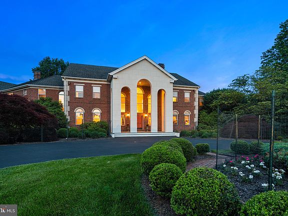 Welcome to Twin Oaks. This stately Georgian style all brick manor home gives homage to its namesake, an historic residence located in Washington DC. Situated at the end of a private enclave of only 9 estates on 90 acres in bucolic Upper Makefield, Twin Oaks encompasses 10 gorgeous acres and includes a private tennis court naturally fence by 100 arborvitae, expansive cedar deck and plenty of space inside for families of any size. You approach the home down a tree lined driveway and turn onto the double front drive for guests, to arrive at the impressively cantilevered front entry portico complimented by flowering specimen trees and lush greenery. Upon entering the double-door entry find the foyer flanked by grand double-butterfly staircases, lighted by a magnificent brass chandelier from the Bowery in NYC, and a view straight through to the 2-story great room with floor to ceiling fieldstone fireplace (1 of 4 in the home) and French doors to the large rear deck. On either side of the foyer you'll find the well-appointed formal living and dining rooms both entered via mahogany raised panel pocket doors and the study / library with floor to ceiling built-ins. The eat-in chef's kitchen is just off the great room and next to the butler's pantry, half bath and laundry rooms. The partially finished basement is massive and with double French door walk-outs, offers many options. In addition to the primary owner's suite which includes a dressing room, sun room, 2 walk-in closets, master bath and office / study, Twin Oaks offers 2 additional suites (1 on each level) perfect for in-laws, nanny / care-taker or guests. The remaining 4 bedrooms are upstairs and each complete with their own full bath and walk-in closet. A well-appointed spa room equipped with a sauna, steam shower and whirlpool tub complete the second level. At build, the homeowners spared no expense in ensuring that the best state of the art construction technologies were employed which is evidenced in the basement ceilings, foundation, utility rooms, 4-bay wide unobstructed garage and throughout many other areas of the home. Enjoy custom heavy wainscotings with 10' ceilings on the first floor, 9' on the second floor and 8'+ in the basement level. Recent 2019/2020 updates include a new central vacuum system with 10yr warranty, new Weil-McLain Cast Iron Boiler and 2 new additional HVAC systems. Served by blue ribbon Council Rock North HS and SF Elementary as well as nearby George School and Newtown Friends private schools, and privately tucked away on what was once rural farmland yet just minutes to Philadelphia, Princeton, King of Prussia and NYC, Twin Oaks truly is a Bucks County manor home estate built for the ages.