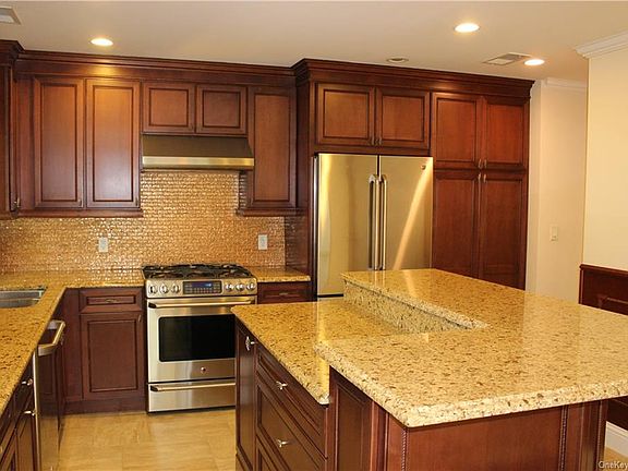 Great home for rent in Rye on a cul-de-sac within walking distance to train, schools and town. This home features a kitchen with center island, stainless steel appliances, and breakfast area, family room with fireplace, sun-room, three bedrooms and a full bath complete the main level. The lower level has a bedroom, full bath, play room, and laundry. Other amenities include a 2 car garage and driveway for parking, hardwood floors, and a large private backyard.