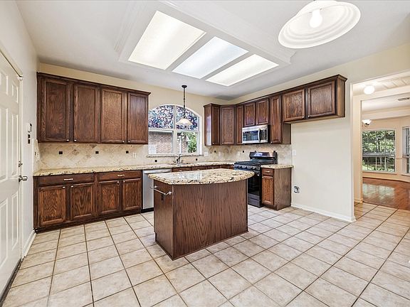 Detached garageFormal dining roomCovered walkwayLarge islandFull sprinkler system