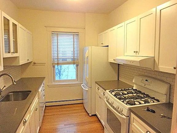 Classically designed second floor apartment in the heart of Cambridge's picturesque Radcliffe neighborhood. This unit has a spacious floor plan with great light, beautiful hardwood floors, and open living/dining areas with two bay windows. The bright kitchen is currently being updated and will be ready by move-in date. Photos to come soon. The main bedroom has en-suite half bath. Two additional rooms could be used as bedrooms or offices with full bathroom conveniently located in between. Enjoy the private covered back porch, and sunny front deck overlooking lovely Victorian & colonial homes. Other amenities include in-unit laundry and additional private storage in the basement. Located close to restaurants & shops along Mass Ave, yet just two blocks from the Radcliffe Quad. Living here offers easy access to Harvard Law School, Lesley University, Harvard Square, Porter Square, and downtown Boston via the Red Line or Commuter Rail. No smoking. No pets. Broker fee of one month rent paid by tenant at lease signing. Utilities not included. Renters insurance needed.