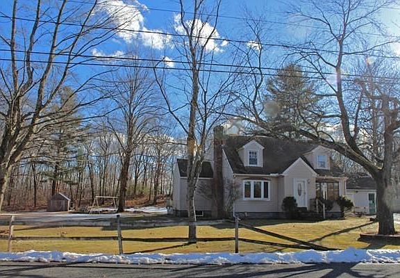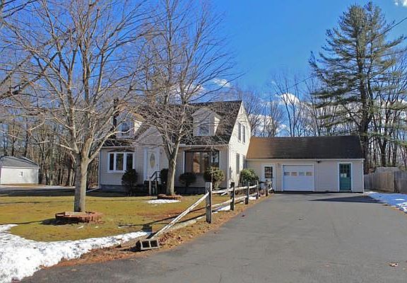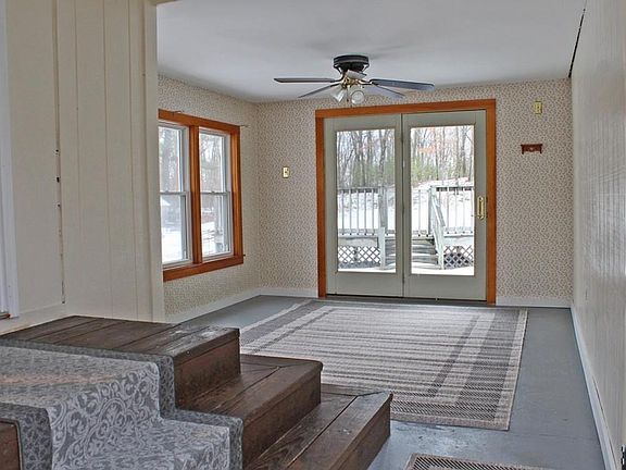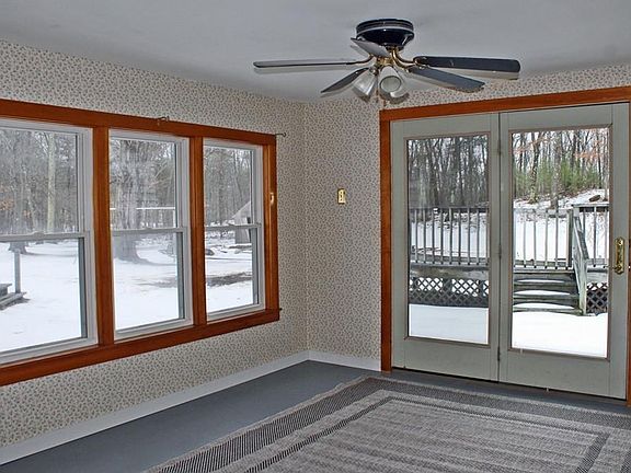 Spacious and well maintained Cape with an inviting open floor plan - Move in ready! Beginning with the generous breezeway full of windows overlooking a large back yard, this one has it all. Freshly sanded oak floors greet you as you walk in and follows you throughout this sun-filled home. The kitchen with knotty pine cabinets and breakfast bar opens up to the dining room with a bay window. The freshly painted interior accents the roomy living room with a bay window, stone fireplace and separate pellet stove, all open and wraps around to the den with a cathedral ceiling and French doors leading to the back deck. Generous Master Bedroom with three closets. Two additional bedrooms with built-ins. The basement is semi finished with a rec room equipped with a pool table, laundry room, utility room and a storage room. The Garage is the size of a 2 car garage, currently with a 1 car overhead door. Located on the outskirts of town on 3/4 of an acres.