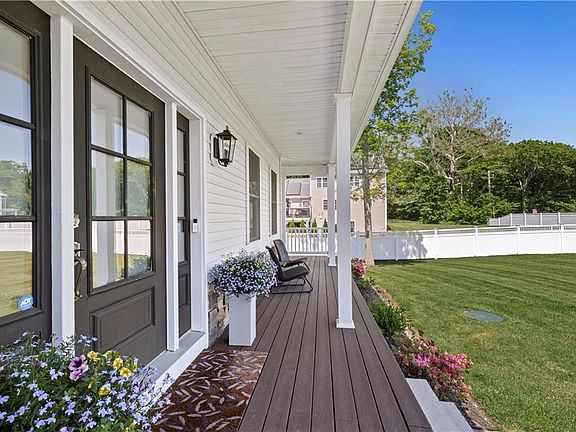 Welcome to 7 Wyatt Ct Seekonk. Completed in 2020, this gracious, custom built residence involves 2168 sq. ft of living space on a three quarter acre homesite. The home faces the cul-de-sac to south with a large front porch. The interior enjoys 9' ceilings and is the ideal convergence of function and form. The floors on both levels are hardwood. The living room can be a home office, television room, or library. The family room focuses on the fireplace with direct access to rear deck/yard. The kitchen and breakfast area are open and bright. Great ergonomics center island, white custom cabinetry 5/4 white, stone countertops. Fully applianced. Second level includes a sumptuous primary suite with with huge walk in closet full bath with twin sinks. The other three bedrooms are all of generous dimensions. Closets and storage throughout the residence is impressive. The garage is oversized 2 plus cars Full unfinished basement Fenced yard. Easy maintenance exterior.