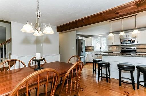 Charming Three Bedroom Cape Situated on Level 1.29 Acres at End of Cul-de-sac. This Home Features Granite Kitchen with Frigidaire Stainless Steel Appliances, Under Cabinet Lighting and Tile Backsplash, Wide Soft Pine Floors in Kitchen and Dining Room, Fireplaced Living Room, Tranquil Sunroom, Two Brand New Full Baths with Marble Vanities, Spacious Master Bedroom, Bonus Room and Office in Finished Lower Level, New Heating System and New Hot Water Tank 2018, New Driveway 2018, Interior Recently Painted, Replacement Windows, Above Ground Pool, Private and Spacious Yard Great for Entertaining, Title V Approved, Town Water. Great Location Close to Shopping, Restaurants and Major Routes.