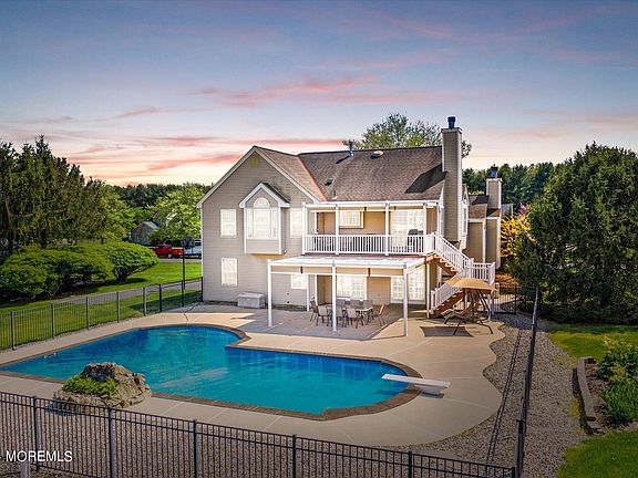 Proudly presenting this wonderful property in one of Plumsted's most desirable neighborhoods. This contemporary style home boasts over 2,400 square feet with 4 bedrooms, 3 full baths and spacious living quarters. Vaulted ceilings in the foyer greet you upon entering and adds a sense of open and airiness to the home. On the left, find a generously sized living room with a large palladium window and wood burning fireplace. Upstairs the formal dining room overlooks the living room. The gorgeous eat-in kitchen features vaulted ceilings, granite countertops, a large center-island. stainless steel appliances, and hardwood floors. Three of the four bedrooms can be found on the second floor, including the master bedroom and two full baths, b both fully renovated with granite countertops and tiled showers. The first floor can serve as an in-law suite with the fourth bedroom, full bath, family room with fireplace, and sliding glass doors leading to the patio. Find tranquility in the resort-like backyard with a heated in-ground pool fully equipped with a built-in cleaning system and waterfall feature. Two shade awnings over the patio and back deck allow you to comfortably enjoy summer days and nights. An outdoor gas line is offered for BBQ hookup. Sliding glass doors off the kitchen open to a deck which overlooks the pool and the cleared backyard. Additionally, this property has a 20x12 storage shed, central vacuum system, Automatic Core 7K Generator, 9-zone sprinkler system, and has been freshly painted. Don't hesitate to schedule a private tour of this home as it won't last long on the market!