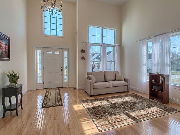 .Welcome to desirable Zain Ridge community! Beautiful, open floor plan with lots of natural light. First floor features large great room with hardwoods, gas fire place and foyer/sitting area with cathedral ceiling. Large kitchen with granite counter tops, stainless range and dishwasher, eating area and sliders to private deck and back yard. Plenty of space to entertain and relax both indoors and out. Second floor has huge master suite with elegant master bath, large closets, and bonus sitting area/nursery. Second bedroom, full bath, and balcony alcove overlooking the great room complete this spacious home. The basement is a large walk-out that could easily be finished for more living area. 2 car attached garage! This home is in a great commuter location and close to area amenities.