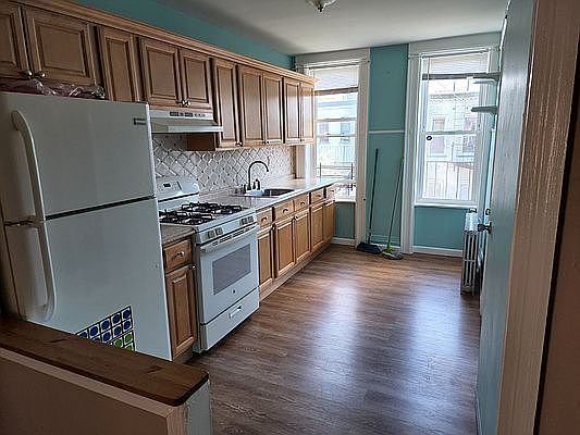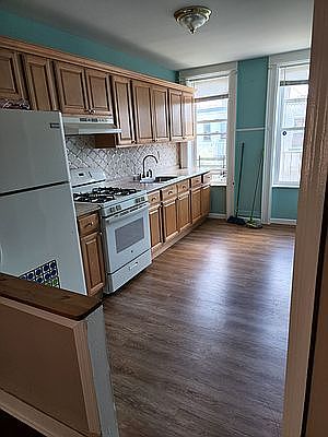This apartment will be ready for August 15th or September 1st. The entire apartment will be repainted in off white, and the bathroom is a new renovation. Modern, 2 Bedroom 5 Rooms, living room dining room or office, full eat in Kitchen, Railroad style apt. 3rd floor. Great location, 8 mins walk to M train, 1 Block from Myrtle Ave shopping and Stop n Shop Supermarket. Windows in all rooms, Bright and airy apartment. Also has 3 closets. Tenant pays cooking Gas and Electric, heat and hot water included. Call for more details or to Schedule a viewing today