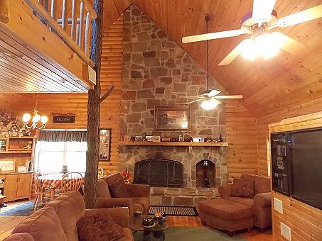 Beautiful log home on 70 acres. If you like your privacy this it the place for you. The home is stick built and sided with real log siding inside and out. Two story fireplace was made from the old stones from the original homestead on property and has a custom made iron screen depicting the home. Knotty pine cabinets and floors, real tree columns finish the look. The home has 3 bedrooms and 1.5 baths. Skylights, a mini bar, Jacuzzi on the back porch, built in BBQ grill, 64" big screen TV and stacked washer and dryer included in price.