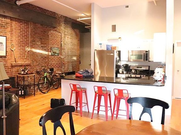 Large (1,000sq feet) South End one bedroom rental WITH GARAGE PARKING INCLUDED IN THE RENT near Boston Medical Center. Rent a rare loft style apartment in newly renovated building in the South End. With 14 foot ceilings, this corner unit is perfect for entertaining with an open floor plan that feels spacious and cohesive. You will find some of the buildings original details, such as the exposed brick and beam, while still boasting oversized windows, hardwood floors, a modern kitchen, and in-unit laundry. Glass French doors separate the living room from the generously sized bedroom that includes a walk-in closet. Bonuses: deeded garage parking with storage, in unit washer/dryer, large walk in closet and a private roof deck overlooking Back Bay. This elevator building is professionally managed. Available Sept 1st, 2018.