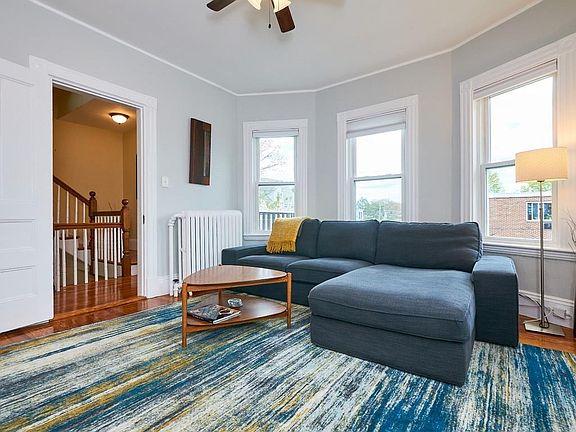 This delightful newly renovated spacious 4 bedroom, 2 bathroom duplex has high ceilings and lots of light throughout! Enter an open flow living area with formal living/dining rooms and a modern eat-in-kitchen with ample cabinets, quartz counters, and stainless appliances. Make the whole top floor your master bedroom suite with a spacious bedroom, lounge area, full bath and a home office (or 2nd bedroom). 2 well proportioned bedrooms and a full bath on each floor offers endless options. Large private basement storage room. Deeded parking space. Tranquil shady shared yard in the back and a charming private deck in the front. Located on the Cambridge line, close to public transportation, nearby Fresh Pond, shopping and restaurants. VIRTUAL TOUR ATTACHED.