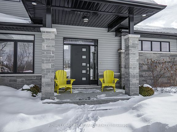 Built in 2016 by Frontier Homes, this 2 sty stunner was originally the builder's own home. Situated on a dead end cul-de-sac with a wooded 3.8+acre lot offering mature trees & views of the Moira River towards the back of property. Enjoy benefits of a country setting with conveniences of things like: nat. gas & Bell Fibe, while being 10min to Hwy 401 & Mall. Outside you will be impressed with the modern stone & vinyl exterior, triple garage, paved parking for 6+ vehicles including RV parking & don't forget the hot tub & heated, saltwater in-ground sports pool with pool house. Inside you will be greeted by a 2 sty great rm 18ft high, with windows from floor to ceiling. The open concept main floor boasts a great layout for entertaining, seamlessly blending the living, dining & kitchen areas. The modern kitchen features white cabinetry along with a grey centre island with seating. Large WI pantry, built-in microwave, gas range, open shelving, desk area, stainless range hood, stone tile backsplash & massive window overlooking the rear yard. The adjacent dining area has a patio door leading to the covered rear composite deck & backyard oasis. The Primary bdrm is located on the main lvl, making this a home suitable for families or retirees alike. Bright rear facing windows, large WIC & 4pce. bath offering dbl sinks & glass/tile shower. Also on main is a convenient 2pce. powder rm & spacious mudroom bridging living space to garage. An extra wide staircase leads to the 2nd lvl with a cozy loft space overlooking the main floor below. Also on this lvl are 2 additional bdrms, a laundry rm & 4pce. bath. The bright & spacious lower lvl is also finished & home to a family rm, 2 bdrms, a 4th bathroom, storage area & utility rm with walk-up to garage, making it ideal for potential in-law suite/multi-generational living. Other features incl: wide-plank wood flooring, water softener, UV & RO systems, nat. gas F/P, transom windows, sep. heat/cool control for bmst & much, much more.