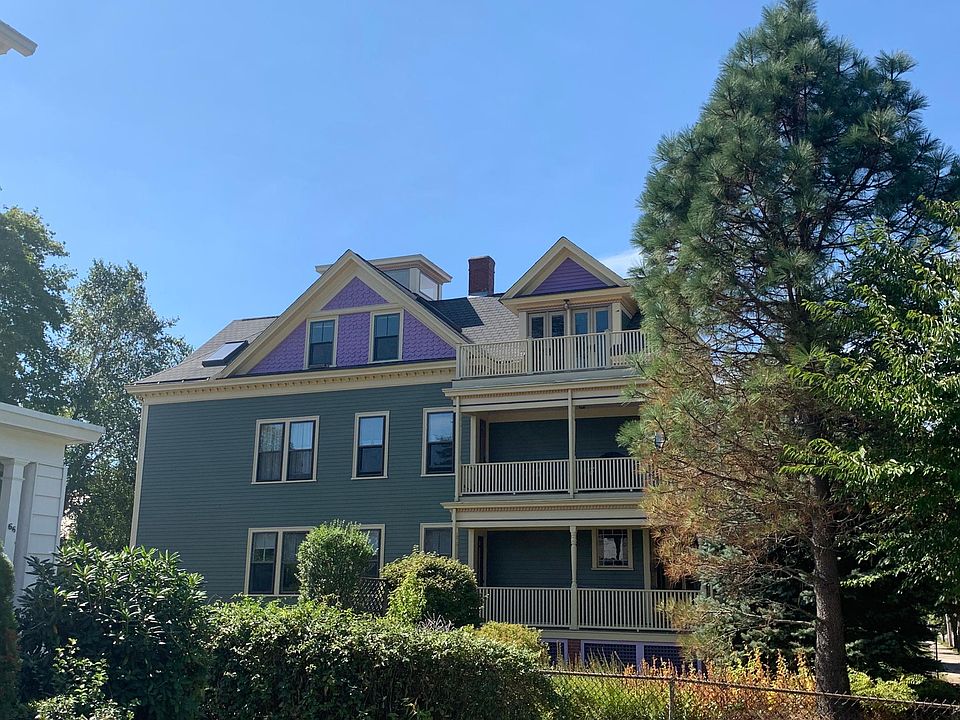 3rd floor, Victorian penthouse apartment expansive water views from porch and 360 degree views from cupola. Completely updated kitchen with stone counters, custom cabinets, bath with tiled shower and claw foot tub with sky window above. New hardwoods throughout. In floor laundry/half bath, 2 bedrooms. The apartment has an open floor plan with a spectacular den leading to a water facing deck. Include garage parking for 1 car and 1 parking for a 2nd. Outstanding! Tenant responsible for Utilities