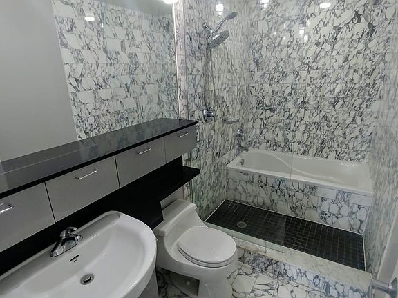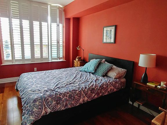 NOTE: all walls are now white. Enjoy this sunny, spacious apartment located minutes from the subway and within walking distance of so many of Toronto's interesting neighbourhoods. This exquisite 2 bedroom, 2 full bathroom suite is a corner unit with a balcony overlooking the shared roof terrace. All utilities except electricity, 24 hour security, in suite laundry and a private underground parking spot included in the price. Common elements include a rooftop patio with bbqs and a hot tub, a full service party room and a rental guest suite. Standard Ontario lease.
