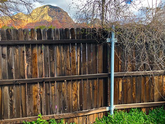 Super clean, 3-bedroom 2 bath, spacious home with two separate sleeping/living areas, featuring a large open floor plan with unobstructed red rock views. Vaulted ceiling in bright great room with modern ceiling fans, newly installed laminate flooring throughout, skylight in kitchen, new kitchen cabinets, new dishwasher, and new washer/dryer in separate laundry room. Adjoining guest suite has a private entrance via French doors, private bath with enclosed bonus/sitting area and forced air heating and wood stove. Home is solidly anchored on block stem wall. Attached two car garage with drive-thru access to large, fully fenced back yard with great red rock views waiting for you to come and make it your own. Home is within walking distance to Safeway grocer, restaurants, and other amenities.