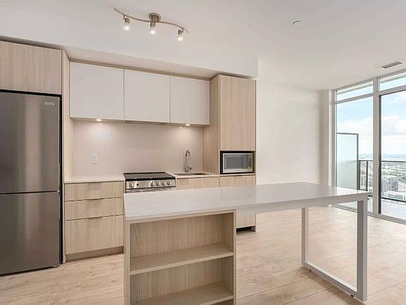 Vita On The Lake! Luxurious 1 Bedroom With A Large Walk-In Closet. 1 Parking 1 Locker, Modern Kitchen W/ Upgraded Quartz Counters, Island, Backsplash! With Unobstructed Views From 54th Floor! Live By The Lake. Outdoor Pool, Bbq Area, Gym, Yoga Studio, Sauna, Game Rm, Concierge, Party Rm, Deck, Guest Suites. Access To The Balcony Through Living & Bedroom. Near Transit, Grocery, Trails, Marina, Shops, Restaurants, Waterfront, Park & More All S/S Appliances, Microwave, Washer & Dryer, Range Hood, One Parking, One Locker.
