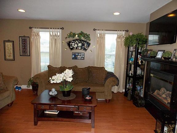 Well built & maintained home in a nice neighborhood. No build lot on right hand side & across the street for added privacy. Gas fireplace in living room runs without elec. Wood Laminate floors throughout Eat-in Kitchen, formal dining Rm, & finished bsmt w-sump pit. Master bedrm has pvt entrance to shared bath. Level, Pvt back yard w-shed. A/C unit 2 months young w-warranty.