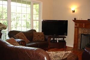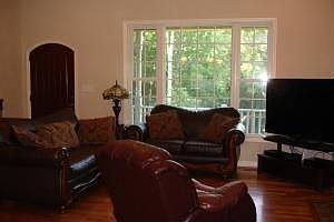 Very private but close in.Water Softener.Granite Counters,Instant hot wtr & ss appliances in Kit. Jacuzzi tub & shower in MBA.42'' oversized tubs in other 2 BAs.Tile all BAs.Hdwds MBR,Hall,Great Rm,Kit,Eat-in Area, & Laundry.Scissor Vaulted Ceilings in MBR.9ft ceilings 1st flr. Vaulted Ceiling GR.Oak steps w/Iron Pickets.Trex & Vinyl Railing frnt porch & back deck.16' garage.92 gal hot water heatr