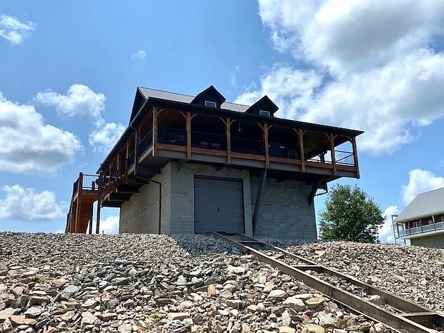 Waterfront River Retreat with all the bells and whistles! Overlooking the banks of the glistening TN River, This home has it all! 5BR, 3BA w/wrap around porch, elevator, hardwood, tile & carpet flooring, kitchen w/granite tops, stainless appliances, sep laundry, primary BR w/private bath-separate tub/shower & walk-in closet! Private Boat Dock, garage storage area & boat tram, cooking/entertainment building with a cool bar area, full kitchen, 1/2 Bath, & covered rear porch w/stone fireplace!