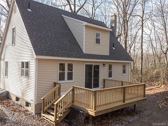 Literally Nothing to do but move right into this sweet Cape in a private setting on 2 acres Thoughtfully and tastefully renovated with quality materials, fixtures, stainless appliances, flooring, and fresh paint New electric panel, new roof, new vinyl siding, new deck, new windows, new hot water heater. You won't be disappointed with the roomy floor plan, french doors, bright open entryway and new deck Conveniently located close to 84 for commuting to Hartford, Boston or anywhere in between. New railing will be added to front steps. Potential to finish space in the roomy basement and add a wood stove for extra coziness and peace of mind. Very low maintenance going forward, it has all been done, just relax and enjoy your new home.
