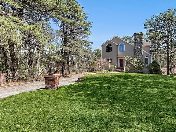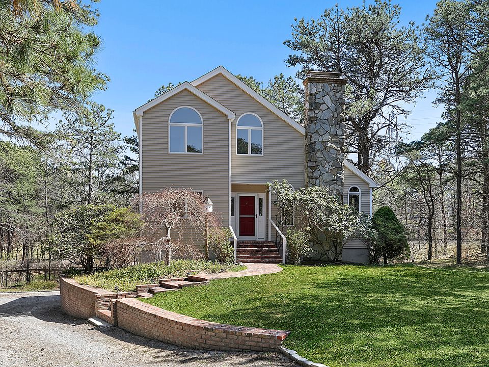 This traditional home in Shinnecock Hills is located at the end of a cul-de-sac and is ideally located close to bay beaches and a 6 minute drive to Southampton Village. The open floor plan of the living room with fireplace, dinning room and eat in kitchen are perched over a park like setting of one acre of land. The large stone fireplace is the centerpiece of a well proportioned living room with vaulted cedar ceilings. The first floor has a study that could be easily converted to a third bedroom if needed. The eat in kitchen connects to the deck area for outdoor dinning. The Basement level has a laundry room, storage room and large garage area. This property can be can be cleared and re landscaped and ample room for a pool, pool house and 3 car garage, Call listing agent to schedule a showing, as this well priced Southampton turnkey property will not last.