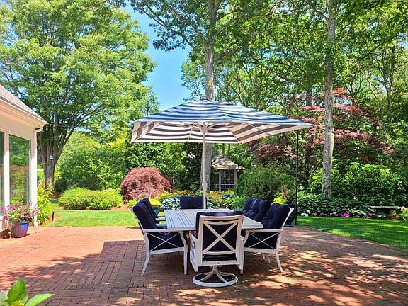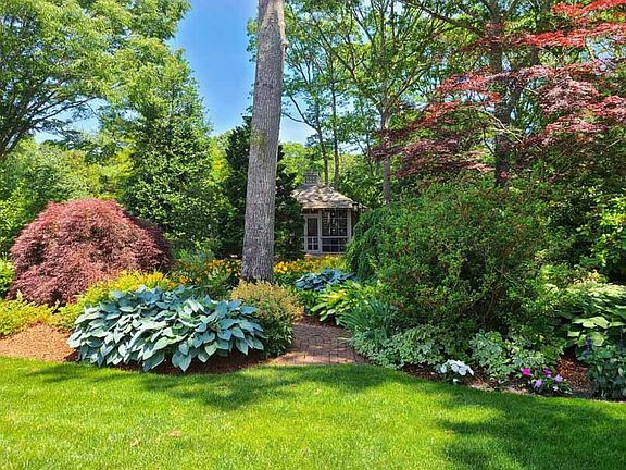 An incomparable setting envelops this sophisticated property in a sought-after area of Osterville. This beautiful, Contemporary style home offers a main house as well as a separate carriage house with two bedrooms and a loft. Infused with natural light and lush garden vistas, the interior of the house is designed for superb entertaining. Beyond the welcoming foyer, generously proportioned spaces have a graceful flow. A stunning chef's kitchen features custom cabinetry and countertops, a spacious center island and top of the line appliances. Wide openings lead you to the family room lined with walls of windows overlooking the gardens and the living room is anchored by an impressive two-story brick fireplace. A spacious first floor primary suite features two walk in closets, bathroom with dual vanities and jetted tub, and a private office that leads to a large deck overlooking the yard. The main house offers four additional bedrooms, and a home theater in the lower level, perfect for further enjoyment. Richly planted gardens dress this one-acre site featuring multiple seating areas, brick patios, a charming bridge over a koi pond, a screened-in tea house and an inground pool with hot tub. Deeded rights to a private sandy association beach on Nantucket Sound with access to Eel River completes the offering. This beautiful property is ideal for the gathering of family and friends to create memories for years to come. Please note: Square footage, bedrooms and bathrooms are Main and Carriage houses combined. The information contained herein has been obtained through sources deemed reliable but cannot be guaranteed as to its accuracy. Buyers are encouraged to do their own due diligence through independent verification.
