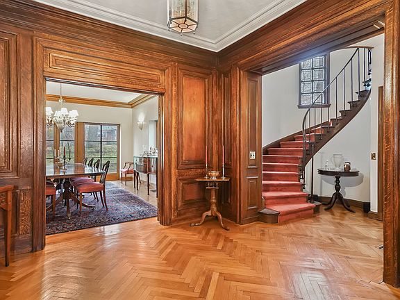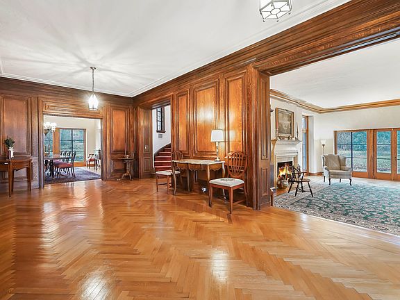 AVAILABLE FOR VIRTUAL SHOWINGS AND PARTIALLY-FURNISHED FOR IMMEDIATE PRE-CLOSING OCCUPANCY UPON SIGNING OF PURCHASE CONTRACT. A solid stone exterior and terra cotta roof envelope this home of substantial proportion. Spacious first floor rooms, including formal dining room and sunken living room, both with full-glass doors that open to the near one-acre property. Large, eat-in kitchen with adjoining pantry and playroom. Second floor master bedroom with dramatic barrel-vaulted ceiling, three further bedrooms, each with en suite bath, plus a warm and inviting den with fireplace, balcony and cathedral ceiling. Huge third floor with full bath. Full, walk-out, unfinished basement offers great opportunities. Located in the estate section of Pelham Manor, 200 feet from the 3000-acre Pelham Bay Park preserve. Designed by nationally-known architect, E. Dean Parmelee and retaining fantastic architectural details, including faience tile bathrooms. More about this home at PelhamLife.net/70BeechTree