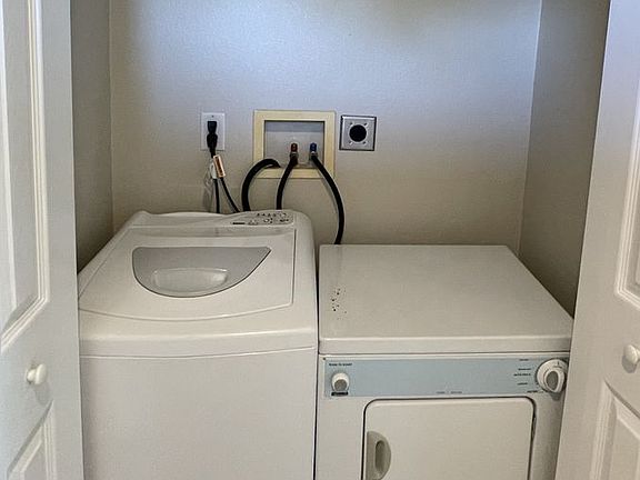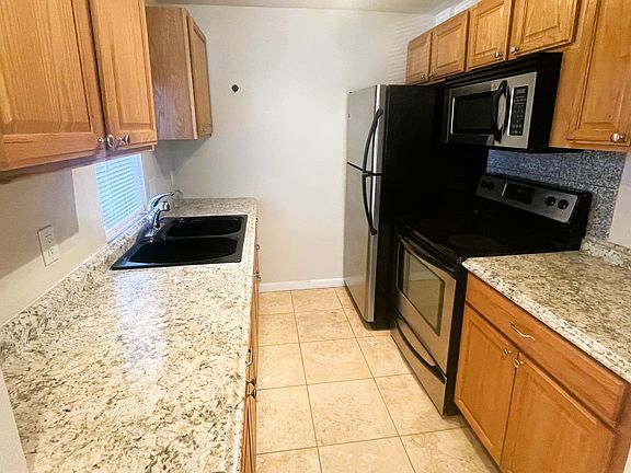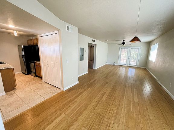 Great location, close to shops, restaurants and hiking trails. This ground floor, end unit features lots of bright light with a large living room with wood floors. French doors from the living room lead to a covered balcony. Wood inspired luxury vinyl in the den and bedroom. Den has a large picture window with glass French doors. One spacious bedroom with two larger closets. Bathroom has ample counter space, linen closet with shelving and a tub/shower combo. The kitchen includes a complete appliance package with microwave, and washer/dryer. Water and trash is included in rent. Tenant pays electric. Parking limited to 2 vehicles. Pet negotiable.