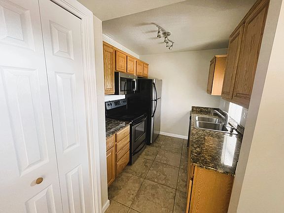 Great location, close to shops, restaurants and trails. This top floor, end unit features lots of bright light with a large living room. French doors from the living room lead to a covered balcony. New carpet and faux wood blinds throughout the unit with tile in the kitchen and bathroom. A den with a large picture window and wood floors for additional space. Once spacious bedroom with two larger closets. Bathroom has ample counter space, linen closet with shelving and a tub/shower combo. The kitchen includes a complete appliance package with dishwasher, microwave, and washer/dryer. Water and trash is included in rent. Tenant pays electric. Parking limited to 2 vehicles. Pet negotiable.