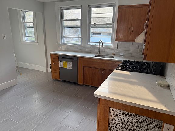 NO BROKER FEES. Spacious 2 bedroom on 1st floor in a charming vintage Craftsman 2 family home on a quiet street in the Arlington section of Kearny. Beautiful tree lined street within 5 minutes walking distance of Roosevelt Elementary School and various daycares. If requested, landlord will provide refrigerator at no additional cost. Eat-in kitchen has new tile floors, newly tiled backsplash, a quartz countertop, stove and a stainless steel dishwasher. Spacious apartment with high ceilings and ample windows that illuminate the apartment with an abundance of natural light. Original hardwood flooring has been newly revarnished throughout apartment. Washer and dryer hook up is available downstairs in basement. Ample street parking and great location. Sorry, no pets are allowed and smoking of any kind is strictly prohibited. Maximum occupants: 4. Easy access to public transportation, major highways, shopping centers, schools, parks and a variety of restaurants and cafes. Rent is $2,300 per month. Landlord pays water; tenant pays electricity, gas and heat. One and a half month's security deposit of $3,450 is due upon signing of a 12 month lease. Applicants are required to provide proof of combined monthly income of 2.9 xs the monthly rent. Background check is required for a fee of $45 per adult, paid for by the applicant through MySmartMove. Available immediately. Please call between 9am-8pm. Owner pays water. Tenants must pay electricity and gas. Sorry, no pets. Smoking of any kind is strictly prohibited. 12-month lease. Parking spot is negotiable and would be additional to rent.
