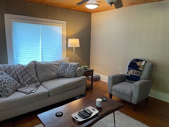 Very special Franklin, NC downtown home on Bidwell Street with one level living in a beautiful setting. Mature Landscaping & many flowering bushes. Some vintage touches remain such as wooden floors, older wood doors and wood molding. Two bedrooms, one bath plus Dining Room and a bonus DEN/OFFICE. Enter into the large front porch with an extra Plant/Flower porch. Large back yard. Walk to shopping/town & very close to medical. Plenty of room for a garden or fence the area for pets. This home shares a driveway and garage w/party wall.