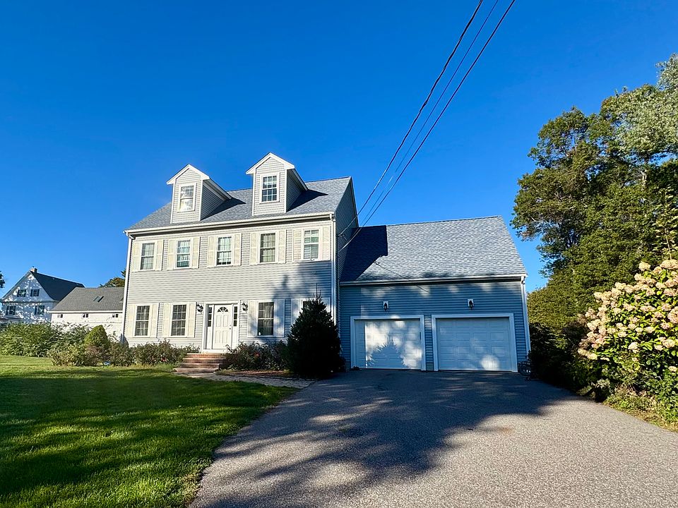 Location! Location! Location! Welcome to a spacious, charming, colonial single-family home in the heart of Sharon. Four bedrooms, two full baths, and one half bath. The first floor features a kitchen, living room, and dining room. The second floor has three bedrooms and two bathrooms. The third floor includes fourth bedrooms plus a bonus room. Three separate heating zones. Large yard and deck perfect for outdoor entertaining. Complemented by beautiful fruit trees and a fenced-in garden, perfect for cultivating fresh vegetables. Attached two-car garage with a four-post lift accommodating up to three cars. The long driveway offers enhanced privacy and ample parking for guests. The property is conveniently located close to community rail, local schools, and the beautiful Lake Massapoag. This house has everything one could ask for; come see it for yourself. Please allow a minimum of 48 hours' notice for all showings. The renter will be responsible for gas and electric utilities, snow removal, and lawn mowing and landscaping. The first month's rent, last month's rent, and a security deposit due at signing.