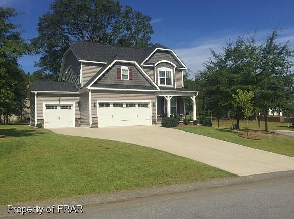 -Honey, stop that car!! A gated community with pool and clubhouse! This 3 CAR GARAGE corner Lot sits on a .47 Acre Lot! Master bedroom downstairs with HUGE closet, bonus loft/study and 3 bedrooms upstairs!! Formal Dining room with coffered ceiling, kitchen with Island and LOTS of cabinet space! Vaulted ceilings, covered patio, plus extended outdoor living area! HUGE corner LOT!! Family Friendly community near Ft. Bragg!! Country Living, yet near Grocery stores, eateries and all!