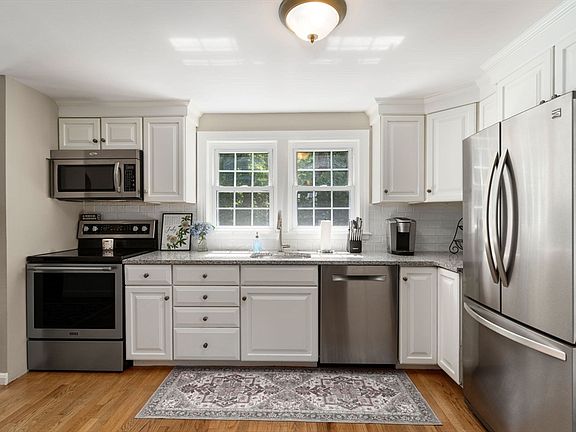 What a delight to step into this well loved and maintained colonial home! Tucked into a sought after neighborhood convenient to all amenities this quiet side street location is the ideal setting to begin life in Norwell! Classic style with arched doorways, lovely fireplaced living room with custom built in cabinetry on both sides is a special detail inviting you to sit and enjoy. The renovated fresh white kitchen is cheerful and bright with granite counters and newer stainless appliances. A generous sized yard has nice privacy and a brick patio for summer time relaxation. Enjoy the easy maintenance vinyl siding, vinyl windows, and newer roof. The plumbing and electrical has been updated and the furnace and oil tank were replaced in 2019. Central air conditioning was installed in 2019. Schedule a visit and see the love and care put into this home over the years.