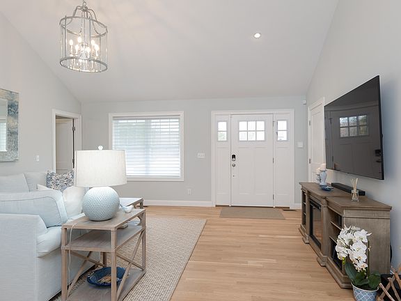 Step into luxury...sparkling, better-than-new 3 bedroom, 2 bath ranch built in 2021 boasting a multitude of upgrades including beautifully finished wood floors, custom window treatments, center island kitchen, quartz counters, stainless appliances, fully tiled showers and central AC. The vaulted ceilings create an airy and spacious atmosphere. Relax on the charming front porch and enjoy the nicely landscaped yard with sprinkler system, paved driveway, paver walkway and granite door step. The fenced backyard with paver patio and fire pit creates a perfect setting for gatherings with family and friends. A substaintial shed can accommodate a small car. Centrally located on a dead-end street, it's a 5-min drive to downtown Falmouth and a 13-min bike ride to the ocean beach. Your dream Cape Cod lifestyle awaits.