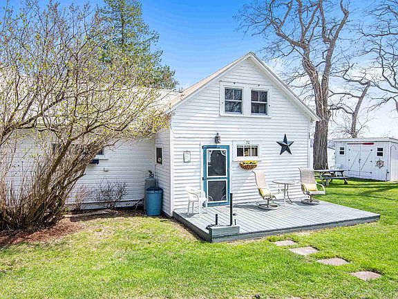 Let your summertime memory making begin at this fully furnished, beautifully maintained and enjoyed camp on leased land, along the shores of Lake Champlain. From the moment you arrive at your white cottage you will feel serenity set in. Stepping inside, the hand-crafted log beams, stone fireplace, and loft area exudes a simple and cozy rustic retreat that invites you in. Enjoy your morning coffee on the front deck or fully enclosed porch as the sunrise paints the sky orange, and then return there after a day of enjoyment in the sun to pause as the moon greets the evening sky with its beautiful glow. This location is protected from the predominant south winds, therefore offering calmer waters for your boat to rest on its mooring in between your lake ventures. It’s also a wonderful jumping off point to explore the Inland Sea and all its wonderful nooks, islands, and beaches. When not on the water you can venture to close by Kill Kare State Park or simply enjoy quiet relaxation at the lake while planning for your next day ahead, and then casting off to sleep with the sound of the waves lapping on the shore. Additional things to note: (1) Electrical has outdoor/portable generator hook-up. (2) Foundation consists of 4 steal beams w/cement footings. (3) New Otter Creek awning for the peak window. (4) Portable garage and wood shed convey with purchase. (5) Mooring included. (6) Pear trees on property. Showings Begin: Thurs. 4.27.