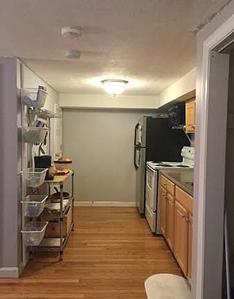 Sunny garden level studio with hardwood floors throughout, stainless steel refrigerator, heat and hot water included in condo fee, 1 deeded parking spot, common areas include pool, playground, picnic area, and laundry room. Close to I95, Rte 9, MBTA bus stop, West Roxbury commuter rail, and Chestnut Hill (D) green line. Pets allowed with no size restriction. Being sold as-is.