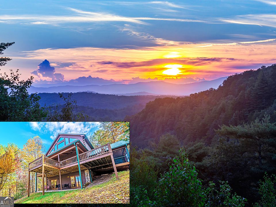 This 2,310 sq. ft. 3BR/2.5BA cabin on 2.03AC has spectacular YEAR-ROUND, LONG-RANGE, MOUNTAIN VIEWS, with a prow front design that brings the views into the home on two levels. This cabin produced OVER $50K IN GROSS RENTAL INCOME in 2023, which will come as no surprise when you see its screened porch "foyer" that includes a fire place and soothing hot tub, a large and inviting open concept great room, which includes a dining area, game table, living area with wood-burning fire place, kitchen and half bath. The wrap-around deck has plenty of space and seating, with the best vantage point for the majestic scenery! The loft master suite has the same great view through the prow windows, with natural lighting and a small fire place, and the bathroom has a fully tiled DOUBLE SHOWER. The terrace level has a game/family room (set up with a pool table currently), a fire place, two bedrooms, and a full bathroom which includes the laundry closet. The terrace patio includes more seating, and near a stepped path that leads to the fire pit, with a horseshoe pit right next to it, all surrounded by peaceful woods. Note: The property includes 100+ feet of Hemptown Creek frontage, but it is about 200 feet below the house and would need a trail created to make it a more tangible feature. Come see this beautiful cabin today and call it your new home or investment opportunity!
