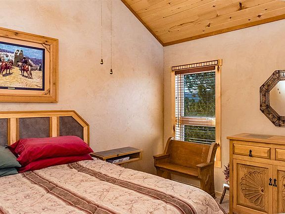 This custom home was built to be the builders personal home so it's built with quality and custom touches throughout. The master is on the main level with the great room that features a wall of windows overlooking the Wheeler Peak Wilderness and abundant wildlife. The bottom floor has a large garage and space for bunk room/game room/man cave and bath, and the upper floor has 2 bedrooms and a full bath. Views from both of the decks! Also has covered parking on the main level for convenience. Enjoy a cozy fire in the energy efficient wood burning stove that will literally heat the entire upper level