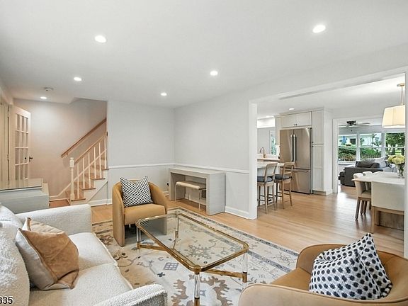 Elegant and spacious 3 bedroom, 2.5 bath home on level lot with a picturesque rear yard boasting a partial view of Canoe Brook golf course. Truly move in ready! 2025 complete renovation of the kitchen (with Thermador appliances), eat in area, mudroom and powder room. The first floor offers a spacious and sun filled family room with three exposures including a door to the backyard brick patio. An elegant living room w wood burning fireplace, custom built-ins, bright bay window. New roof 2022. The second floor offers three nice sized bedroomsincluding an expanded primary suite. A beautiful hall bath with marble floors and radiant heat flooring. Primary bath was designed with an oversized stall shower, heat lamps and linen closet. Additional recreation space exists in the lower level along with the laundry area. Other features include recessed lighting, newer windows, 2 zone HVAC, generator hook up and new wood fence around rear property, new blinds and refinished wood floors. This home has been meticulously maintained and is a must see!