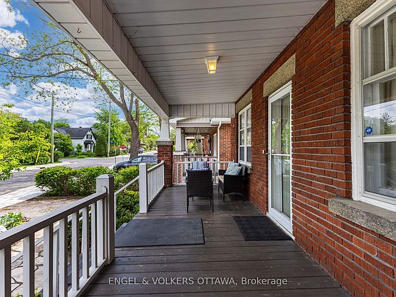 This charming 2-storey brick home is nestled in the heart of Wellington Village and is meticulously maintained, blending timeless character with tasteful updates. The main level showcases hardwood flooring, high baseboards, crown moulding, and vintage-inspired details that add architectural charm throughout. Two living areas at the front of the home feature oversized windows, creating an inviting space for entertaining. The open-concept dining area connects seamlessly to the kitchen, which is appointed with white shaker-style cabinetry, stainless steel appliances, subway tile backsplash, and a peninsula facing the dining area. The 4-piece main floor bathroom, complete with a full tub/shower and classic finishes. Upstairs, the spacious primary bedroom has hardwood floors, soft blue walls, and sloped ceilings that enhance its cozy feel. The second bedroom, bright and airy, offers a neat, finished space that runs in the knee-walls behind the room, which would make a great playhouse for kids or space for extra storage. A charming full bathroom on this level combines wainscoting, a white-tiled shower/tub, and a medicine cabinet, ensuring comfort and style. The full, unfinished basement is a blank canvas for your vision - ideal for a workshop, gym, or storage, with a dedicated laundry area including a washer, dryer, and utility sink. A side entrance provides convenient access to the backyard and garage. Outside, the landscaped backyard features mature trees, perennial gardens, a raised deck and access to the kitchen, and a detached garage. This space is perfect for summer gatherings and quiet afternoons and evenings. Located on a quiet residential street just steps from Wellington Street West, this property offers walkable access to boutique shops, award-winning restaurants, and the Parkdale market and is steps from the Tunney's Pasture LRT station. Offers presented at 2:00pm on June 3rd, however, the seller reserves the right to review pre-emptive offers as per form 244.