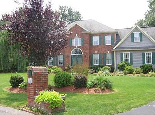 A home is RARELY for sale on lovely Carriage Lane! Be the lucky buyer of this beautiful brick-front Colonial built in 1996 on wonderful large lot at end of this desirable cul-de-sac. Outstanding 2-story entry foyer; lovely formal Dining Rm w/ gleaming hdwd & detailed wainscotting; fantastic gourmet Kitchen w/ tile flooring,granite counters,pretty cabinetry & upscale appliances including the sub-zero fridge and duel-fuel range. Living Rm open to Family Rm w/ Grecian stone gas fireplace. Master w/ masterbath featuring a spa tub, two vanities & two walk-in closets.Three add'l spacious Bedrooms including the bonus room with built-ins and a window seat - and which could be a great Office, Hobby Rm or 2nd floor Den. Lower level expands your living area with a finished rm, a work rm, and plenty of storage. New high efficiency on-demand hot water heater.Gas Heat & Central Air.Two car attached garage.Deck overlooks peaceful backyard.Hang your heart in this large, lovely home!