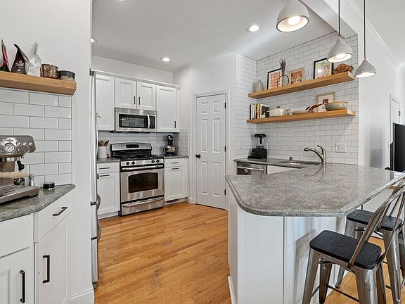 Delightful two bedroom, two-bath condo with a dedicated non-tandem parking spot just minutes from Porter Square. Check out this first level open-concept unit with high ceilings. A front porch and exclusive back patio for outside space is key for city living. The kitchen was updated in 2021 with new shelving, lights, painting of cabinets, and new backsplash. It also has a LARGE walk-in pantry - best ever. Counter seating for three. The primary has a large walk-in closet along with an updated bathroom in 2024. The second bathroom was renovated in 2022. All new entry doors, including the slider and newly painted bedrooms and bathrooms. This home has been loved. The laundry is located in the mudroom, the side entrance to the driveway. There is nothing left for you to do but unpack. Easy access to Red Line, Davis, and Porter Square. Very low HOA fee.