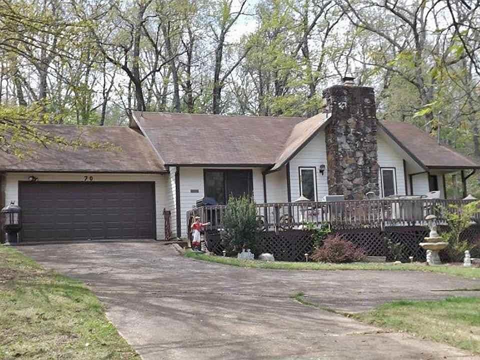 Walk to the North Golf Course! No need to pay for cart storage if you live in the 1,234 sq. ft. home across the street. This home has 3 bedrooms, 2 full baths, wood burning fireplace in the open living room/dining area, a large deck across the front of the house, 2-car garage with shop area space to the rear, and a gentle slope down to the street. Wood double pane windows, drywall interior, large master bedroom suite with walk-in closet, and nice laundry room with budget desk just off the kitchen.