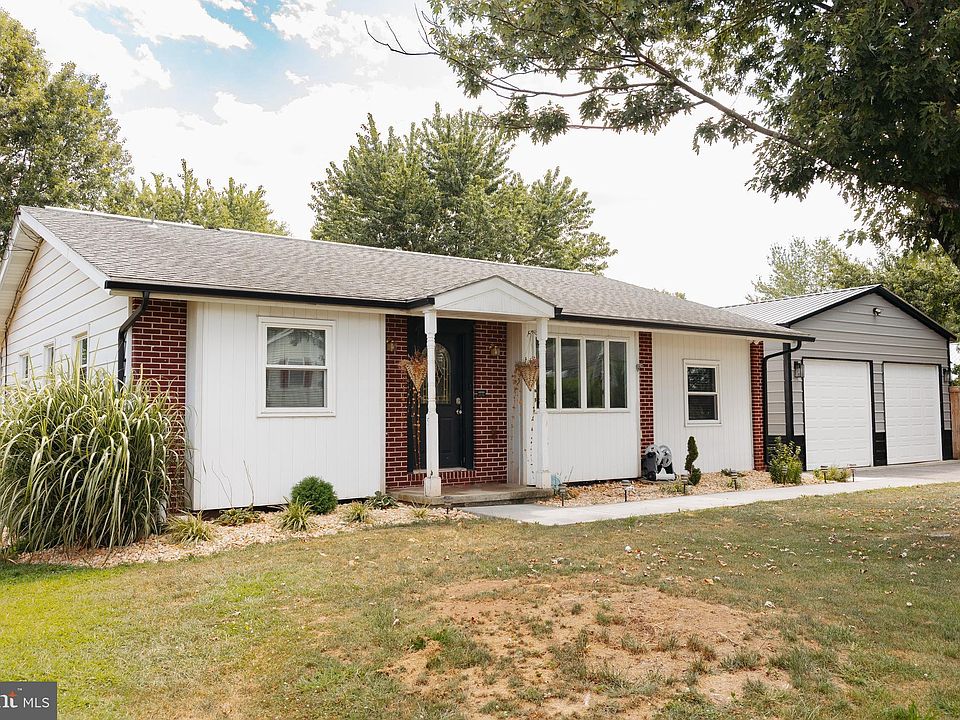 Welcome to 70 Clearview Lane — a well maintained 3 bedroom, 2.5 bath rancher with great updates inside and out. Step inside to the bright living room with LVP flooring that continues through much of the home. Straight ahead, the kitchen offers updated appliances, ample white cabinetry, and space for a dining table, and leads to the sunroom with large windows overlooking the backyard. A slider opens to the freshly poured patio and gazebo — a great spot to enjoy summer evenings or the upcoming crisp fall nights. The backyard backs to an open field and has partial privacy fencing on each side, giving a nice sense of separation without blocking the view. Off the living room to the right, a barn-style sliding door opens to the updated full bath with a beautiful tiled shower and new vanity. Pocket doors connect the bath to the primary bedroom. On the other side of the living room, you’ll find two additional large bedrooms and a spacious, freshly painted laundry room. One bedroom includes a private half bath, while the other is next to a hall bath with a tub/shower combo. Both bathrooms have also been freshly painted. The basement provides great storage space and a separate enclosed room that has been set up as a home gym, but could also work well as an office or hobby space. Outside, find the oversized 23’ x 30’ metal garage on a concrete slab with electric and power garage doors — perfect for vehicles, hobbies, or extra storage. 70 Clearview Lane is waiting for you, schedule your showing today!